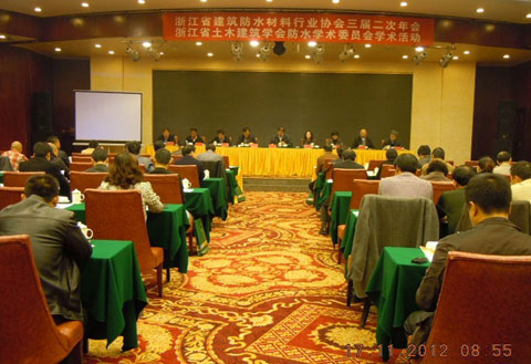 2012年11月16—17日,浙江省建筑防水材料行業(yè)協(xié)會(huì)三屆二次會(huì)員大會(huì)暨浙江省土木建筑學(xué)會(huì)防水學(xué)術(shù)委員會(huì)學(xué)術(shù)活動(dòng)在臺(tái)州市舉行。會(huì)議分析了目前防水材料行業(yè)的發(fā)展情況,對(duì)企業(yè)誠(chéng)信形象的塑造寄予了厚望,并就此部署了協(xié)會(huì)下一步的工作。